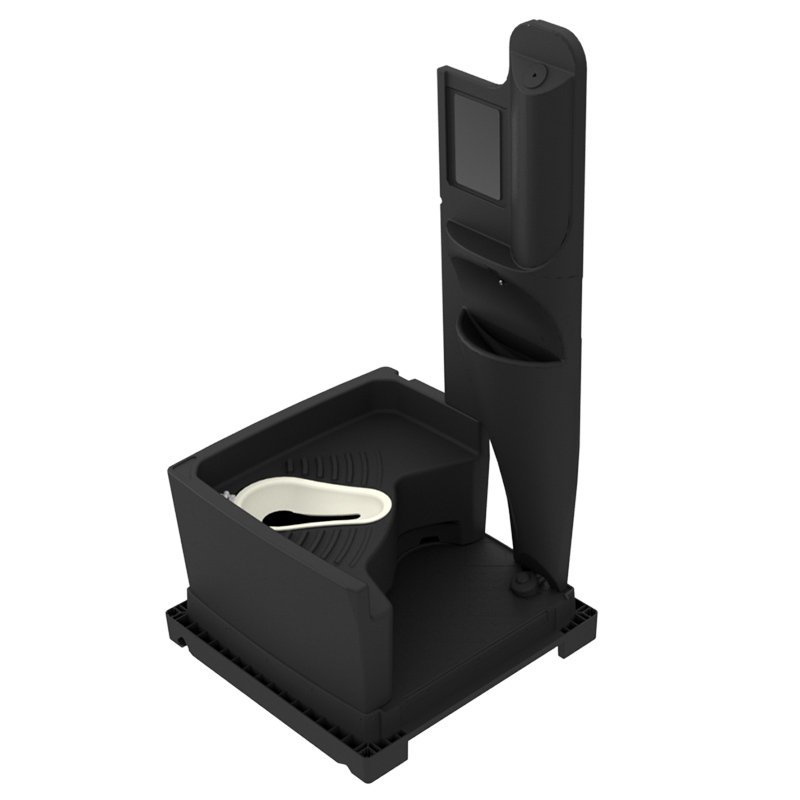 CUBE portable toilet with squatting tank features the classic CUBE cabin exterior with its minimal design and a no-touch squatting pan. Using the strongest materials, Armal is able to produce durable and easy-to-clean squat toilets.