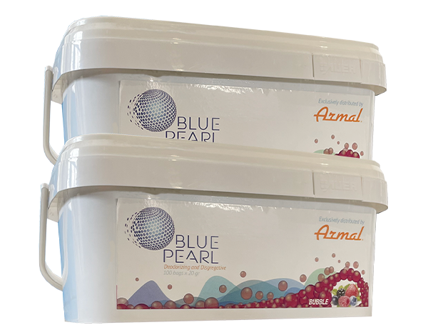 Armal Pearl is a collection of cleaning products for portable restrooms. Thanks to an innovative formula, Armal Pearl deodorizing and cleaning power neutralizes unpleasant odors in a few minutes while spreading a pleasant scent with different fragrances. All Pearl cleaning solutions come in single-dose pods containing the amount needed for one ordinary service. The products are biodegradable and safe for environment.