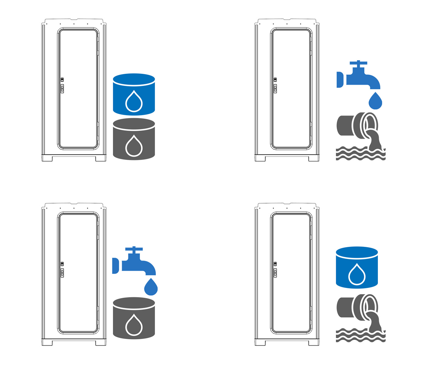 Not the ordinary portable restroom, but an appealing restroom with fully automated flush and hand wash sink plus led motion sensor light. Users will not miss their home bathroom because E-TOP is designed to deliver a comfortable experience in a modern sleek style.