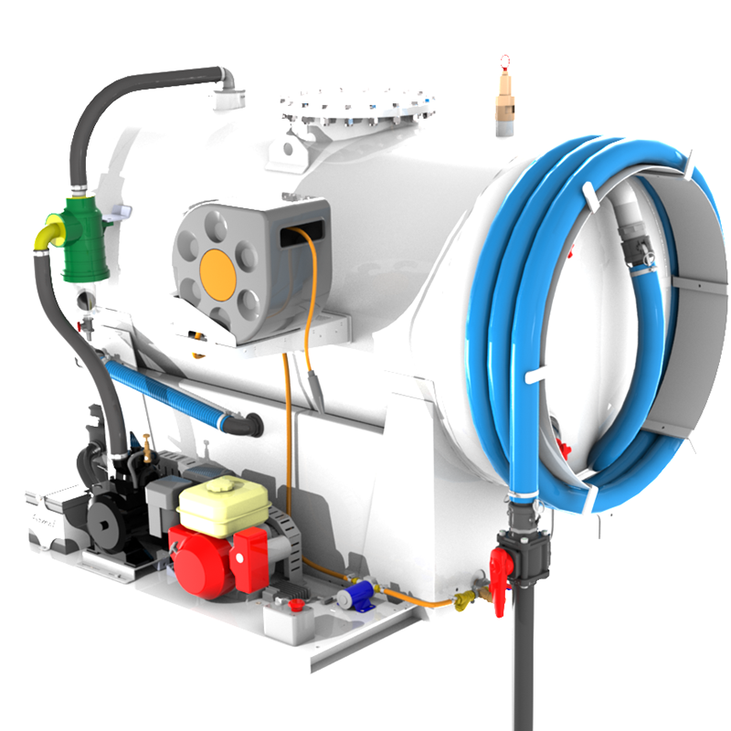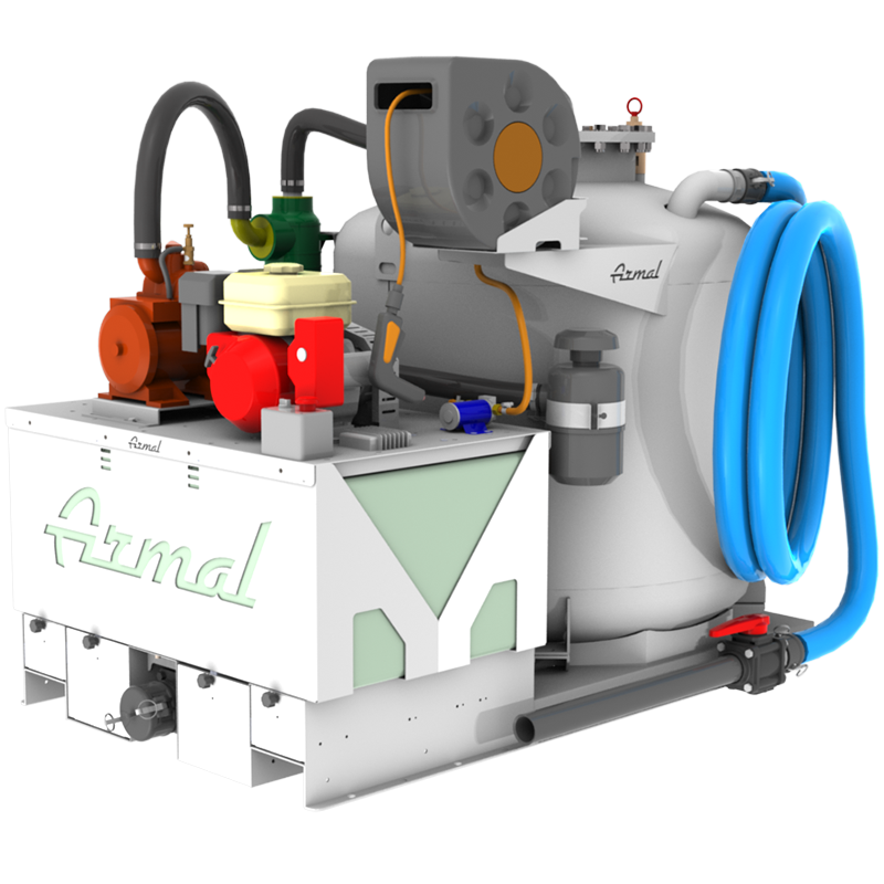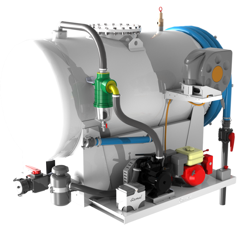 The vacuum pump is driven by an internal combustion engine by means of a belt drive while the washing system is driven by an electric pump. To obtain the maximum lightness of these units, they come with one suction and one washing station. Simple to operate and maintain, EASY vacuum tank units are also available in different capacities to meet all customer needs.